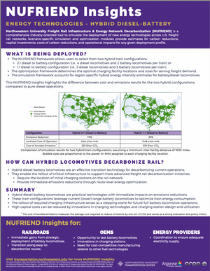 The Northwestern University Freight Rail Infrastructure & Energy Network Decarbonization (NUFRIEND) Dashboard is now available for public use on the NUTC website at: nufriend.transportation.northwestern.edu.